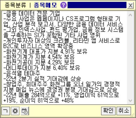-주요 사업은 웹페이지나 CS프로그램 형태로 기업, 산업 분석 보고서, 다양한 금융 데이터 서비스